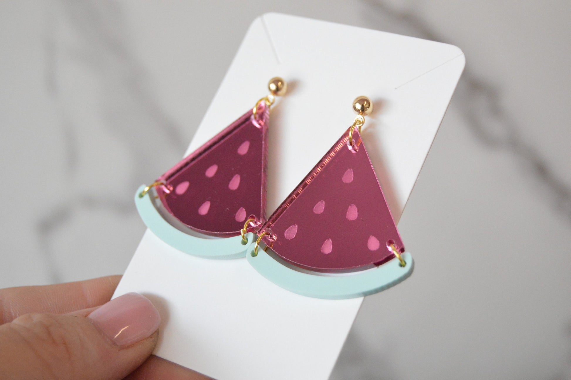 Make a splash this summer with these handcrafted watermelon dangle earrings!